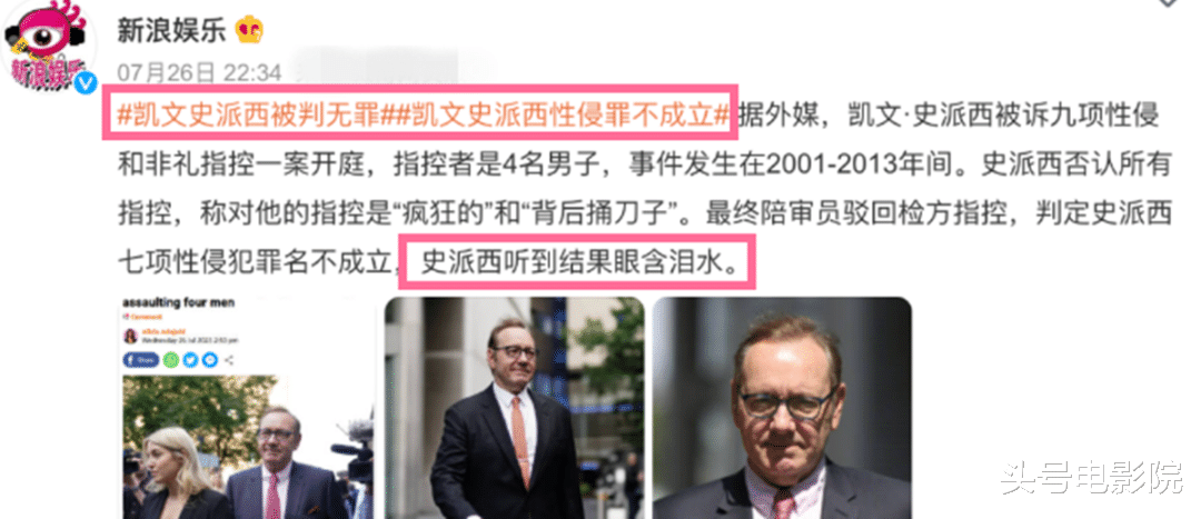 更大的转折发生在2023年7月,英国方面的陪审团宣布对斯派西的九项性侵指控全部不成立。