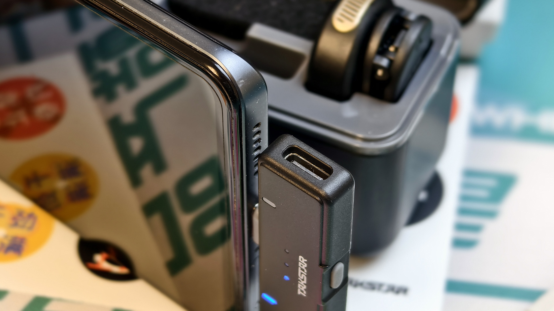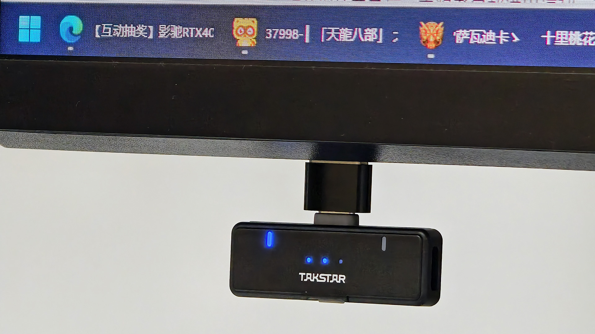 得胜V2的自动配对功能给日常使用带来了极大的便利。在实际使用中,我们发现发射器和接收器在开机状态下即可完成自动配对,根本不需要手动按键,大大简化了操作流程。这对于新手用户或是对技术不熟悉的使用者来说,无疑是一项非常友好的设计。当然,日常的使用过程不仅限手连接手机使用,通过附件里的TYPEC转接头,可以当做电脑的麦克风使用,录音效果是真的强,使用也是足够的方便。