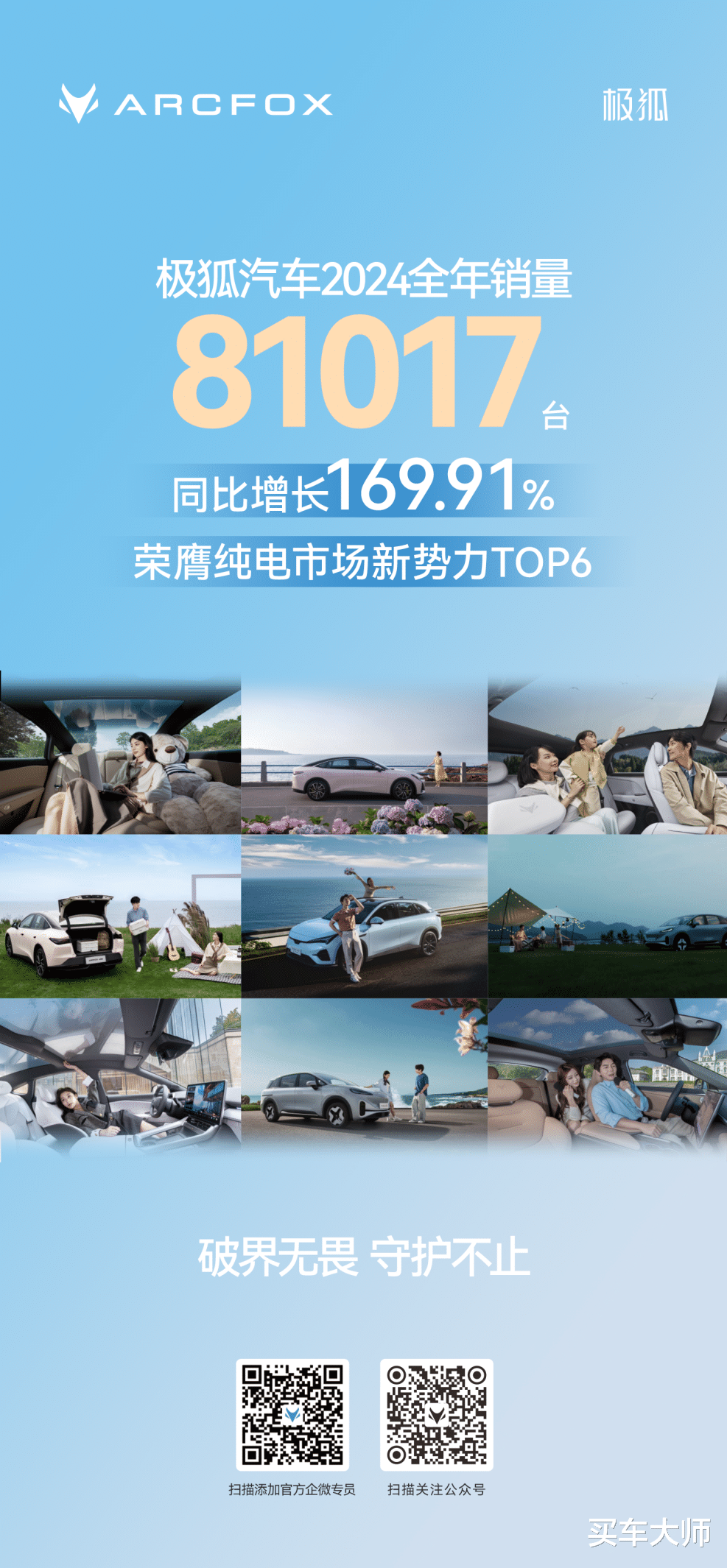 但偏偏也有人不信邪,坚持纯电,并且小有成就,它便是今天的主角——极狐。2024年1-12月,北汽极狐总销量为81017辆,同比增长169.91%。尤其是下半年,极狐更是连续数月销量破万,在刚刚结束的12月,销量更是达到12032台。如果说,插混是过渡,纯电是未来,那极狐可以说是在纯电市场整体受阻的情况下,驶上了直通未来的快车道。