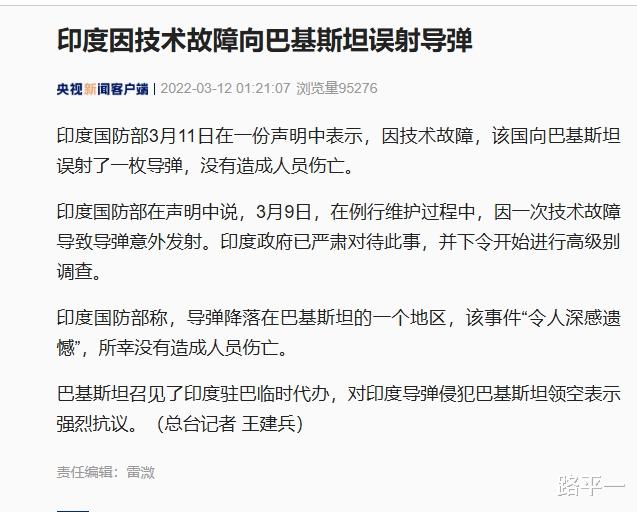 确实啊,印度每次试射导弹,咱们和巴基斯坦确实有点害怕,为啥呢,因为它射不准啊,发射出去之后,经常迷路。你看啊,2022年,印度对导弹系统进行例行检查,结果不知怎么滴,发射了一枚火箭,发射就发射吧,还发射到巴基斯坦了。