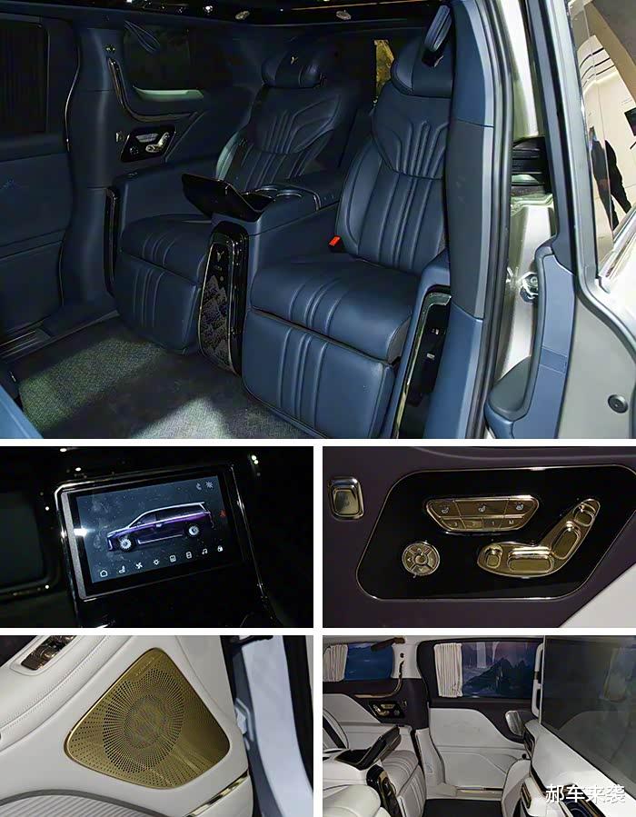 内饰最大的亮点则是采用了全隔断独立后舱,并配备了主副冷暖箱、密码式保险箱、50寸沉浸式云幕、脚托加热、66处鎏金饰件以及隐藏式雨伞等高端配置,彰显了其超豪华定位,毕竟70万的售价在新能源市场的确也不算便宜了。