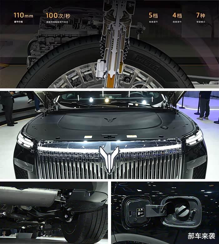 内饰风格主打简洁+豪华,其中16.1英寸中控大屏+21.4英寸后排液晶屏均为标配。值得一提的是,像55英寸超大AR-HUD、32扬声器全景环绕殿堂音响、二排双侧3.5英寸智控扶手屏以及13升智能冷暖箱等豪华配置也全部配备,而且像自动开合车门(20000元)、流光星辰把手(5000元)、天地之镜轮毂(10000元)和鎏金紫外观配色(10000元)等部分配置还支持选装。