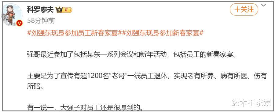 对于刘强东这次亮相员工家宴,网友也是议论纷纷。有知情人士爆料了刘强东露面的真实原因,有博主称刘强东近期参加了公司一系列的会议和新年活动,主要是为了宣传有超过1200名一线老员工退休,实现了老有所养、病有所医、伤有所赔的情况。