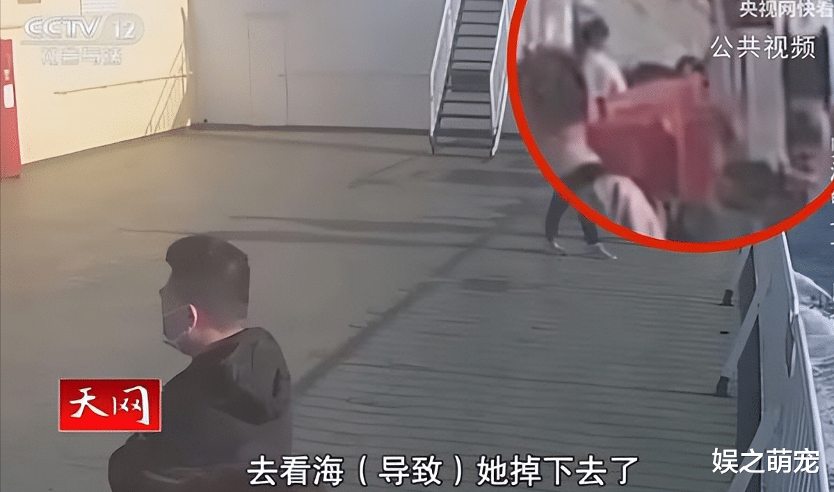 毫无防备的妻子重心失控,跌向黑暗的海水中。
