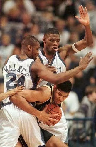 维克森林大学魔鬼执事队的一场普通比赛中,蒂姆邓肯又一次享受到了他专属的防守待遇,三人包夹。可能对面的球员也会崩溃吧,眼前这个面无表情的家伙,明明早就已经预定了NBA选秀状元的位置,可为什么就是赖着不走?