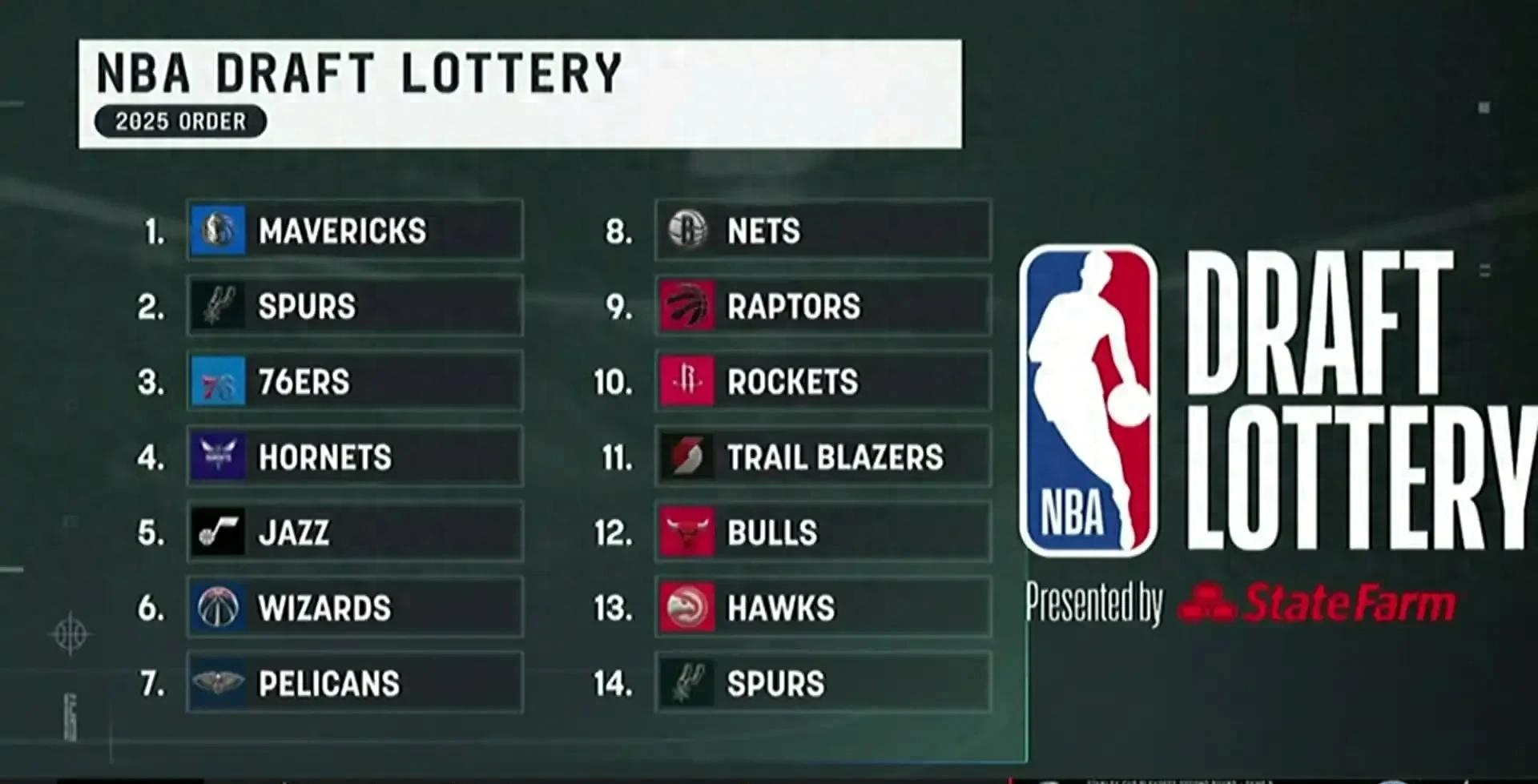 2025年NBA乐透抽签仪式在芝加哥举行,状元签概率仅1.8%的独行侠摘得状元,眼签和探花分别被马刺和76人收获。而状元签概率并列最高(14%)的黄蜂、爵士和奇才均未进入前三。
