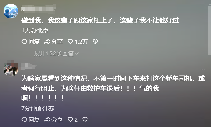 知情人安女士说:"救护车司机都喊他让一下了,白车司机就是不让,这种行为真的太过分了!"是啊,这哪是过分,这简直是在草菅人命。