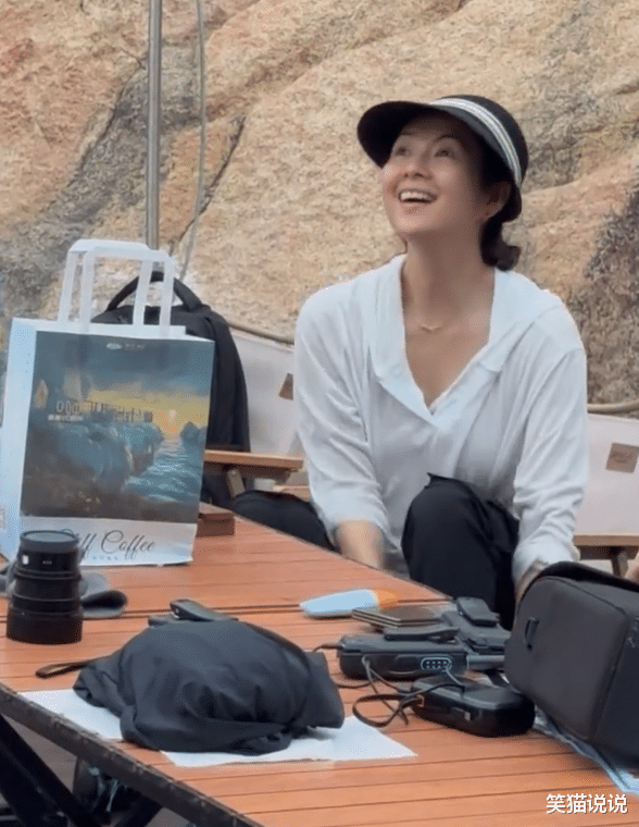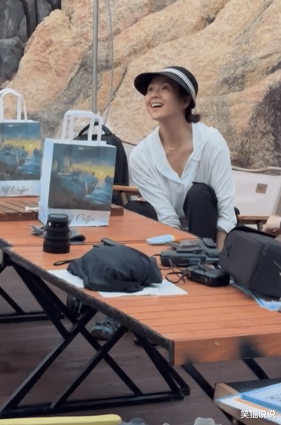 有网友晒出了在海南偶遇章子怡时拍到的视频,视频中的章子怡穿着白色的连帽上衣搭配黑色的长裤,她将长发束起,戴着黑色的防晒帽。章子怡坐在桌前,她一边整理鞋子一边跟前面的朋友聊天,有说有笑,看起来很惬意的样子。