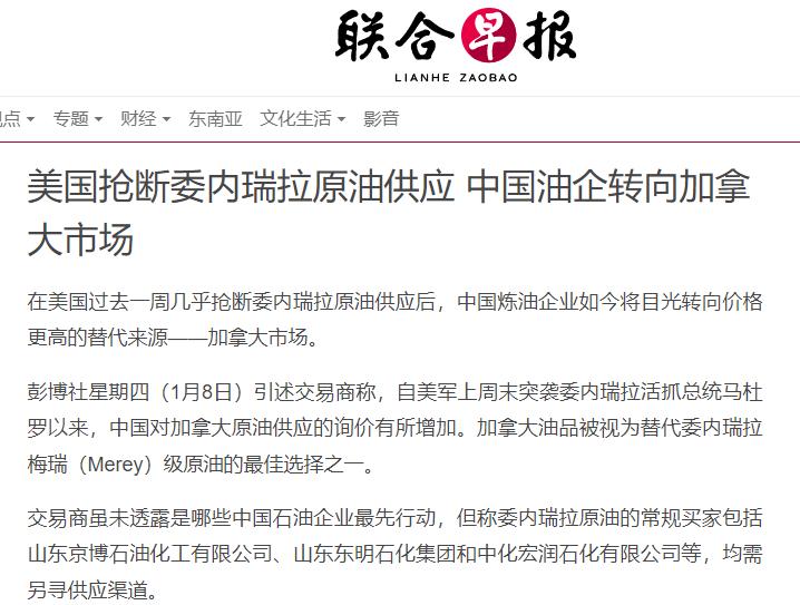 就在大家谈论加拿大总理将要访问北京的时候,有媒体报道称,我们国家的油企已经开始将目光聚焦在加拿大这个国家了,要知道,最近一周美国和委内瑞拉发生了不少事情,国际媒体都认为是美方要控制委内瑞拉的石油,而之前我们的很多油企也一直是从委内瑞拉进口原油的,委内瑞拉原油重质高硫且黏度大在国际上很受欢迎,可是美国控制委内瑞拉总统的目的估计就是控制原油。