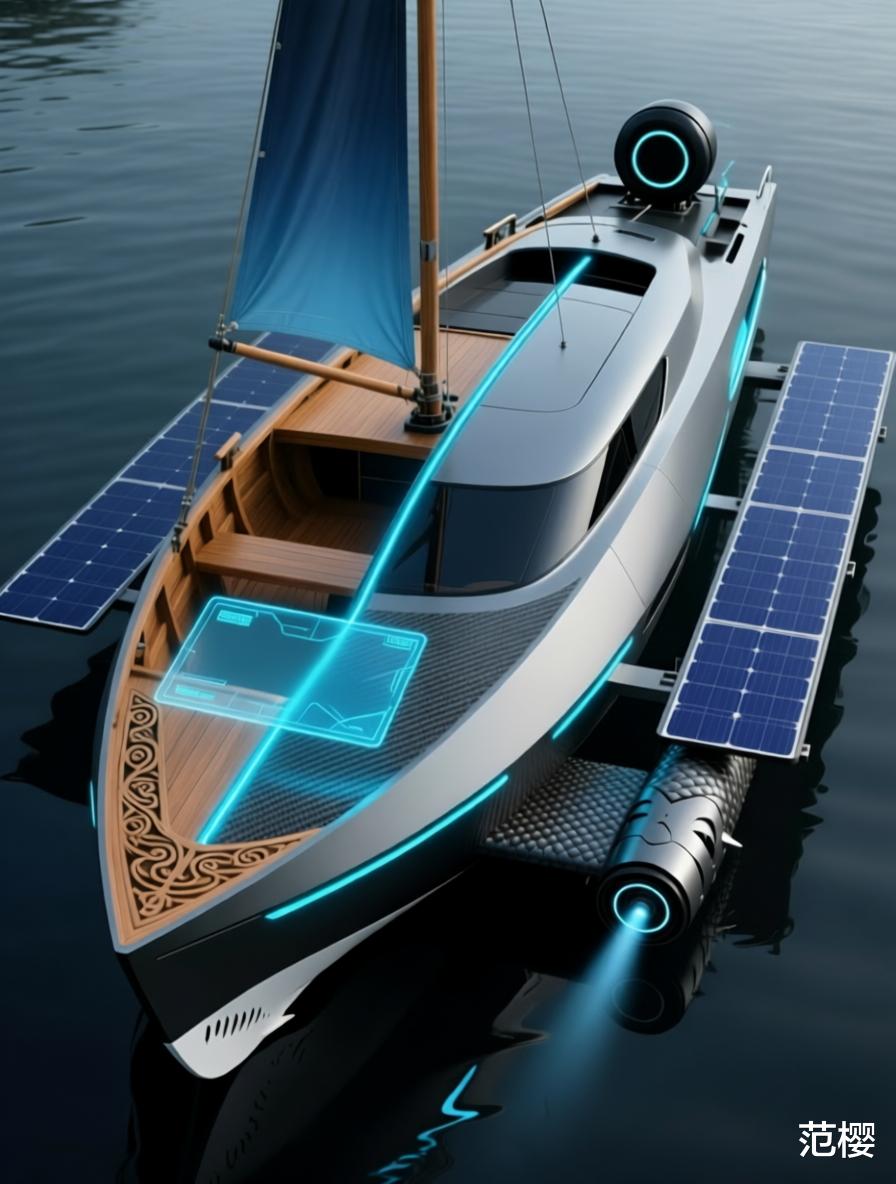 这款自划船不仅是水上交通工具,更是移动的智能生活空间。它承载着两个航海文明的智慧结晶,在传统与未来的交汇点上,重新定义水上出行体验,开启人与水域的全新互动方式。AI生成(工具:夸克)