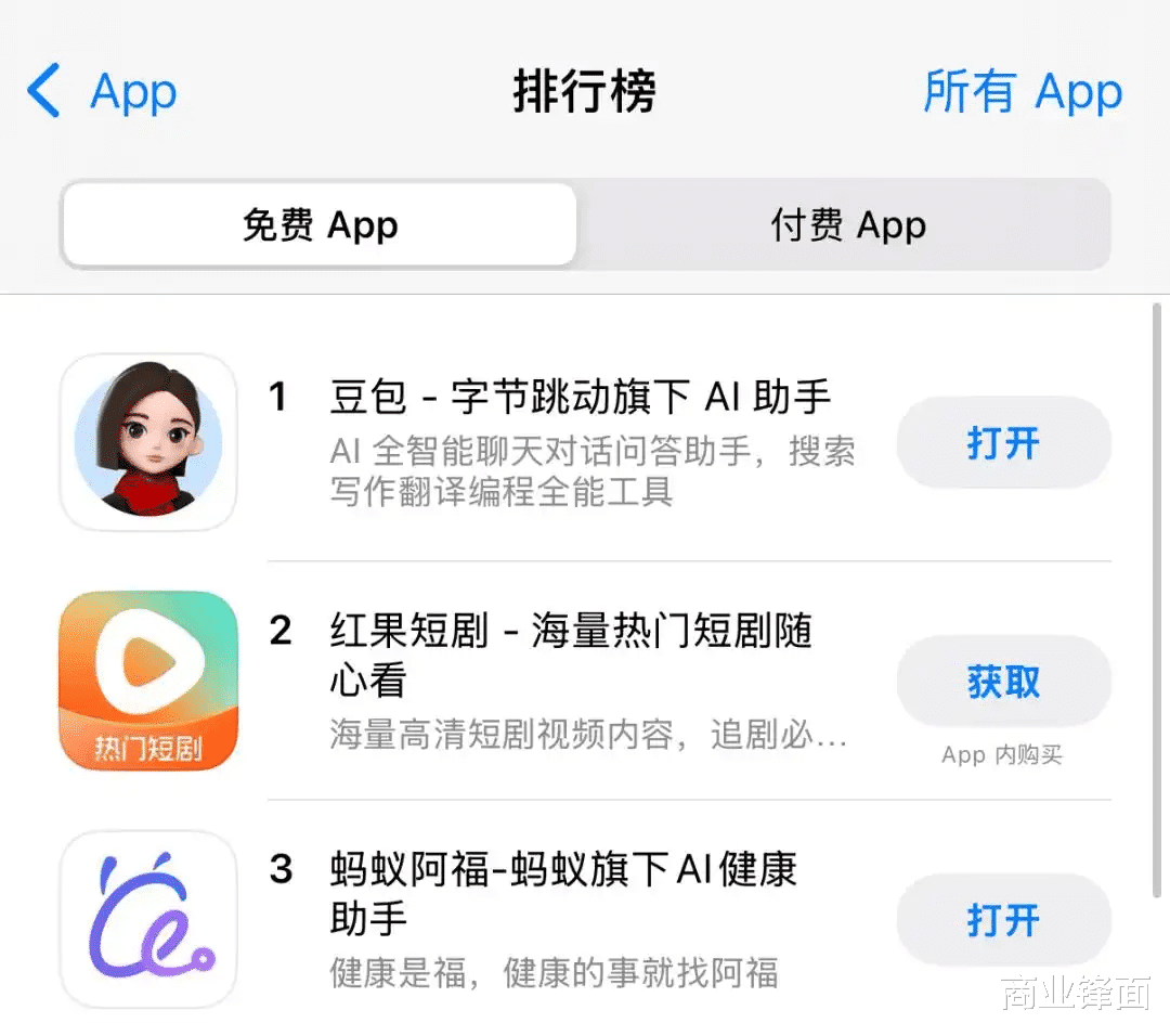 进入2月份以来,各大APP下载榜单几乎成了各个AI应用的竞技场,你追我赶,热闹非凡。2月6日上午,APP Store免费APP的排行榜上,腾讯、字节、蚂蚁、阿里的AI们冲进了前六名。