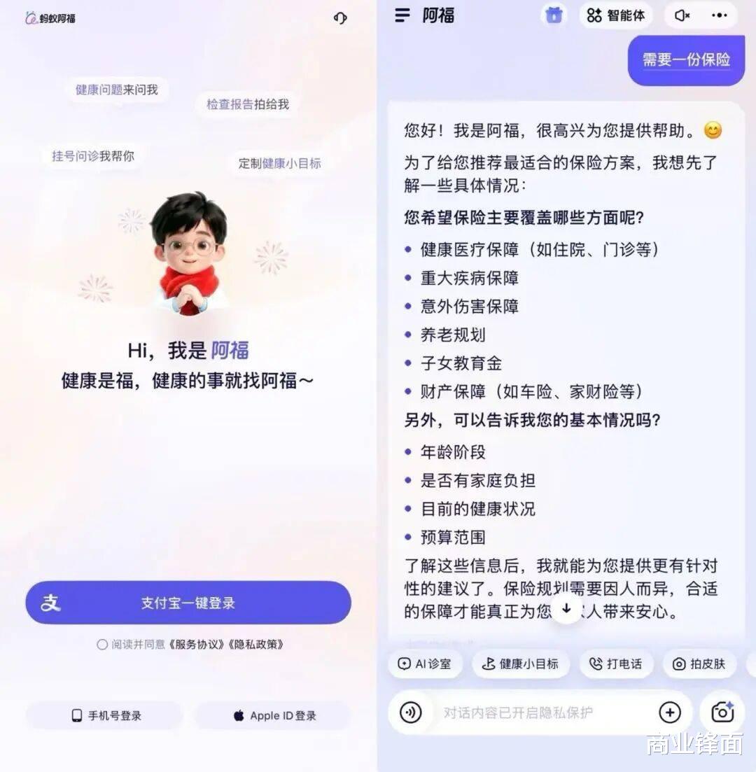 尽管有灵光这样的通用AI,但从投入和结果来看,蚂蚁的押宝更多在蚂蚁阿福上。韩歆毅在专访中表示,“我们已重回战场,阿福是下一个十年。”