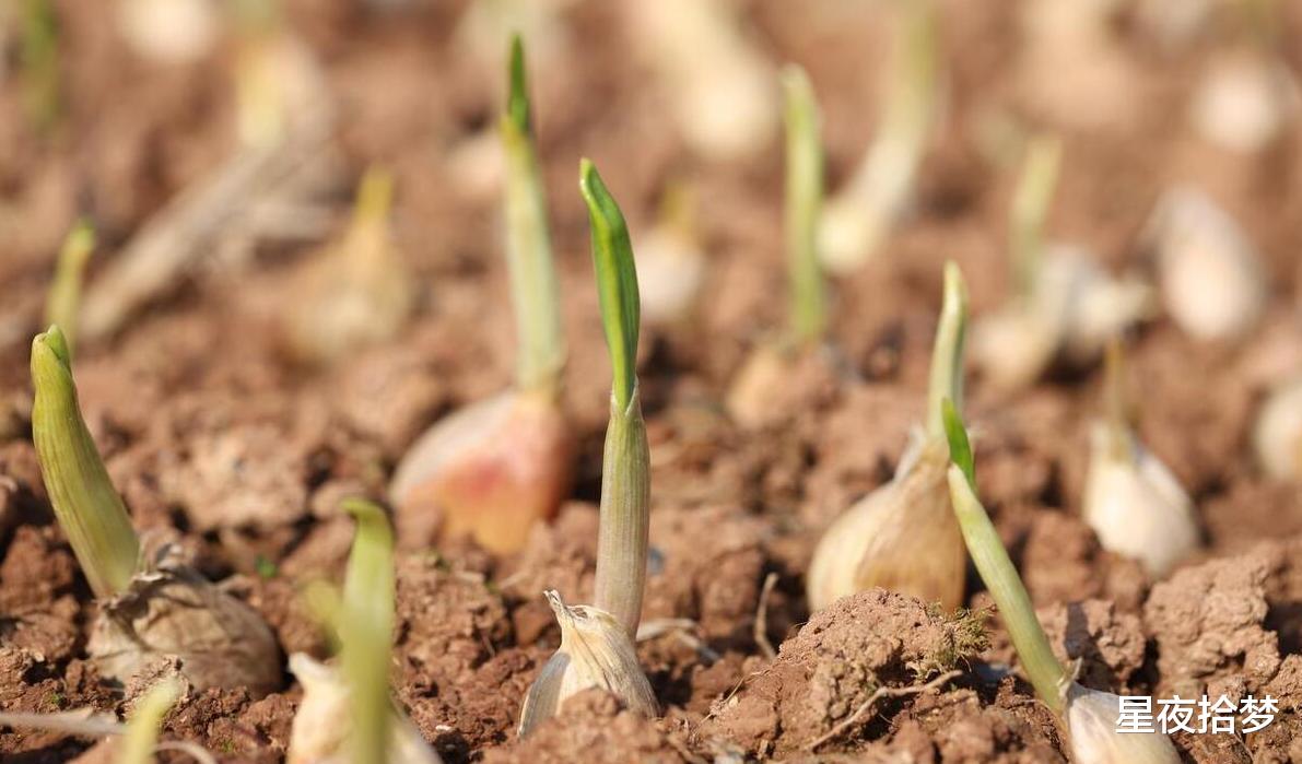 这段时间,气候温和,土壤湿度适宜,有利于蒜瓣的萌发和生长。