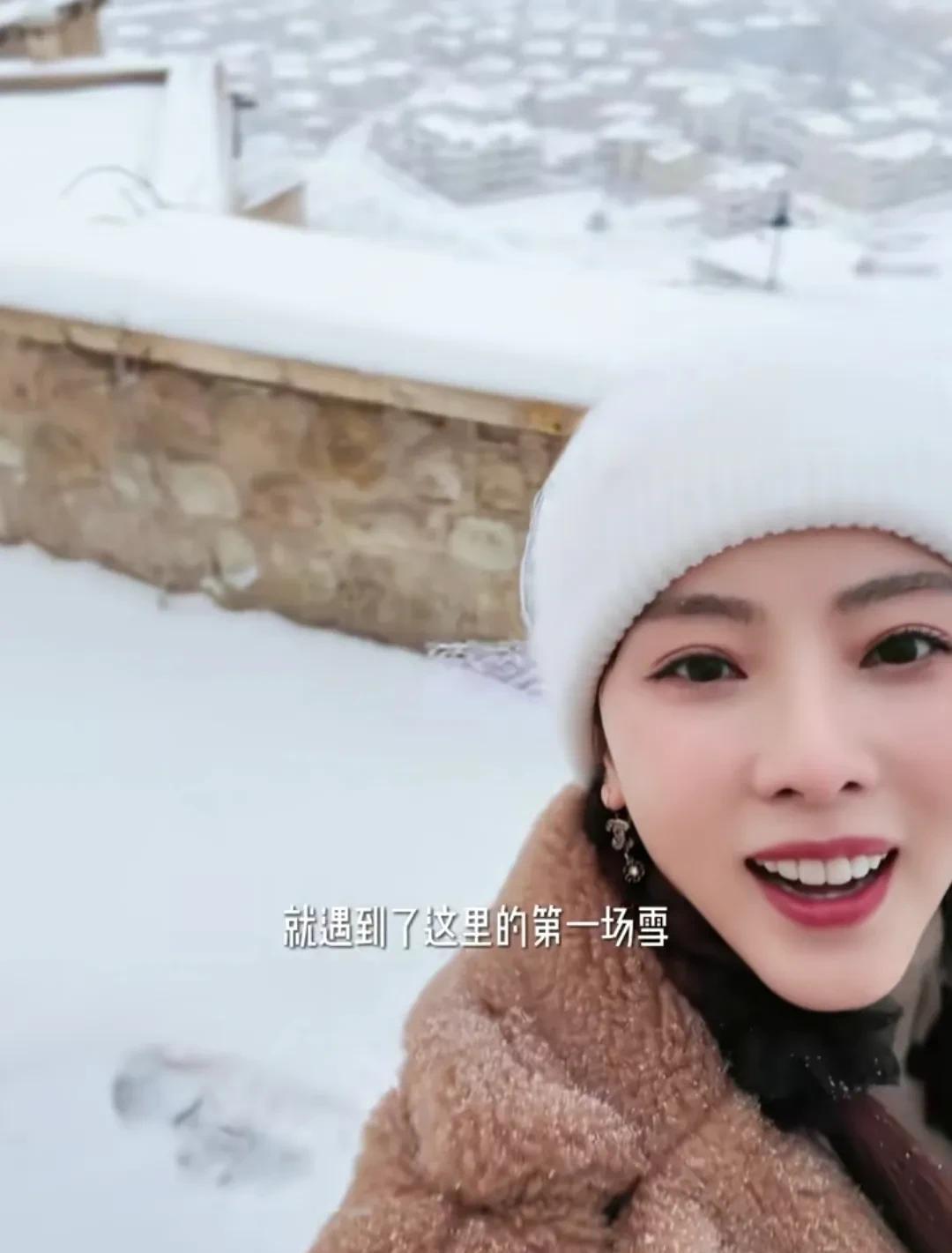 漫步在银装素裹的土耳其,李思思感受着初雪的浪漫。
