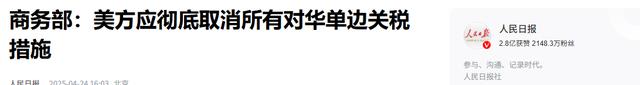 人民日报2025-04-24——商务部:美方应彻底取消所有对华单边关税措施