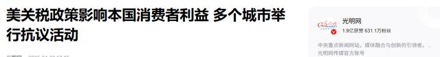 光明网2025-04-20——美关税政策影响本国消费者利益 多个城市举行抗议活动