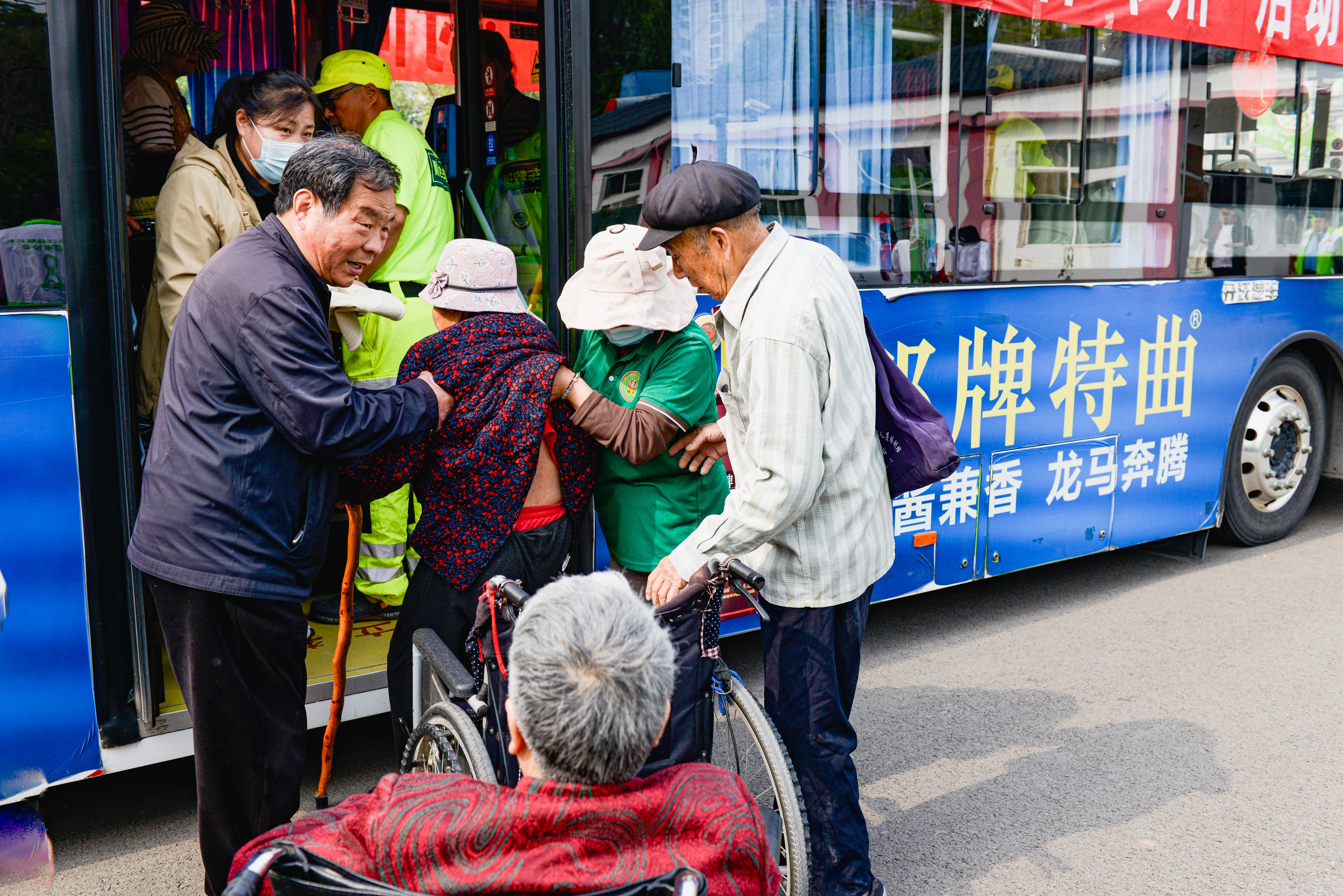 邳州市平安志愿者负责人李昂俯身与老人交流,他询问一位97岁的老人在敬老院过得怎么样,老人连声说:“好的没法说,护理员给我们洗脚、洗澡、洗衣服,给我们盛好饭菜送到跟前,伺候我们比儿女还好!”旁边的护理员听后高兴地说:“照顾好老人是我们的职责。”另一位老人对李昂说:“每天都有志愿者来为我们服务、拉家常,住在志愿者办的敬老院,我们心情好得很。”出来一次不容易,为了给老人们拍下美好瞬间,中国摄影协会会员胡向阳等两名摄影师全程跟拍。一位游人看到志愿者抱着老人上车,感动地说:“老吾老以及人之老,志愿者发自内心地关爱老人,没有大爱之心的人、对老人没有感情的人是做不到的。”