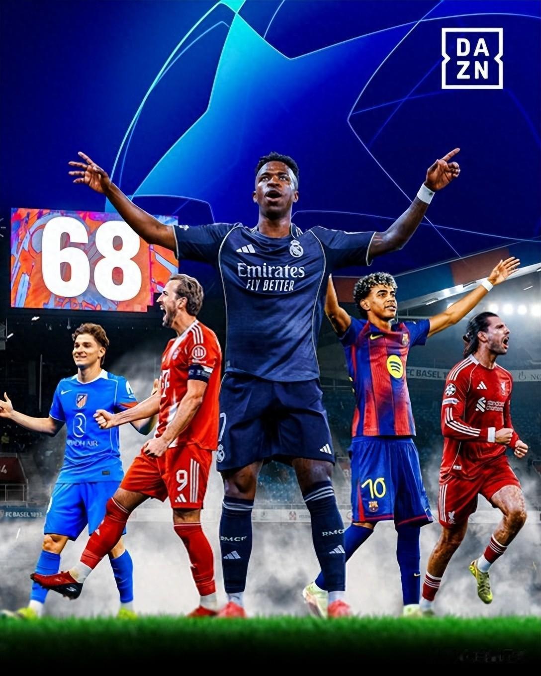 历史之最: 68 球这一数字,打破了欧冠改制以来该阶段的最高进球纪录。