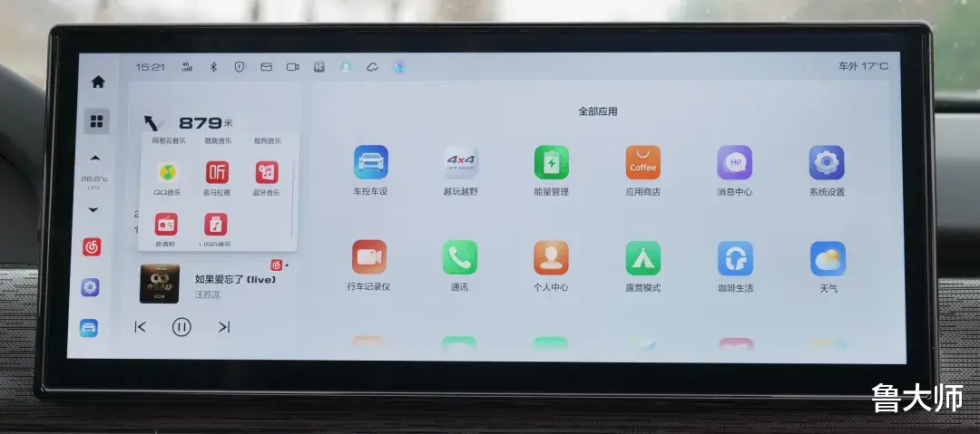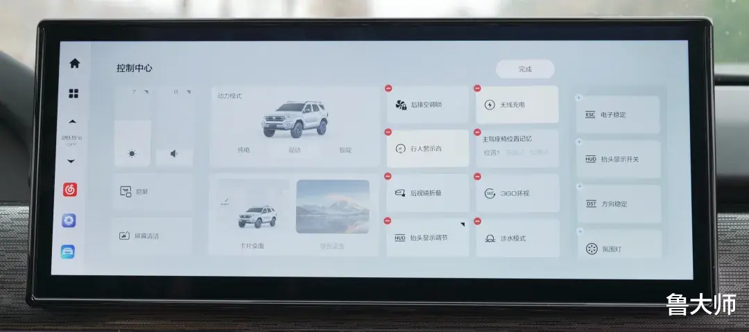 虽说坦克400Hi4-T的车机在少部分交互项上的测试速度和排名是差了一点,但从具体的使用上来说并未造成太多不便。其中控屏分辨率为2880×1080,观感还算可以。在桌面层级,该车提供了卡片桌面和壁纸桌面两种显示形式。卡片桌面不支持卡片自定义,但支持随意移动位置,用户可以根据使用习惯调整卡片布局;