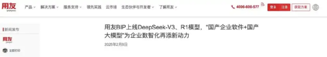 好在用友网络运气好,2025年初,DeepSeek横空出世,逐步打破国际巨头在大模型领域的技术壁垒。