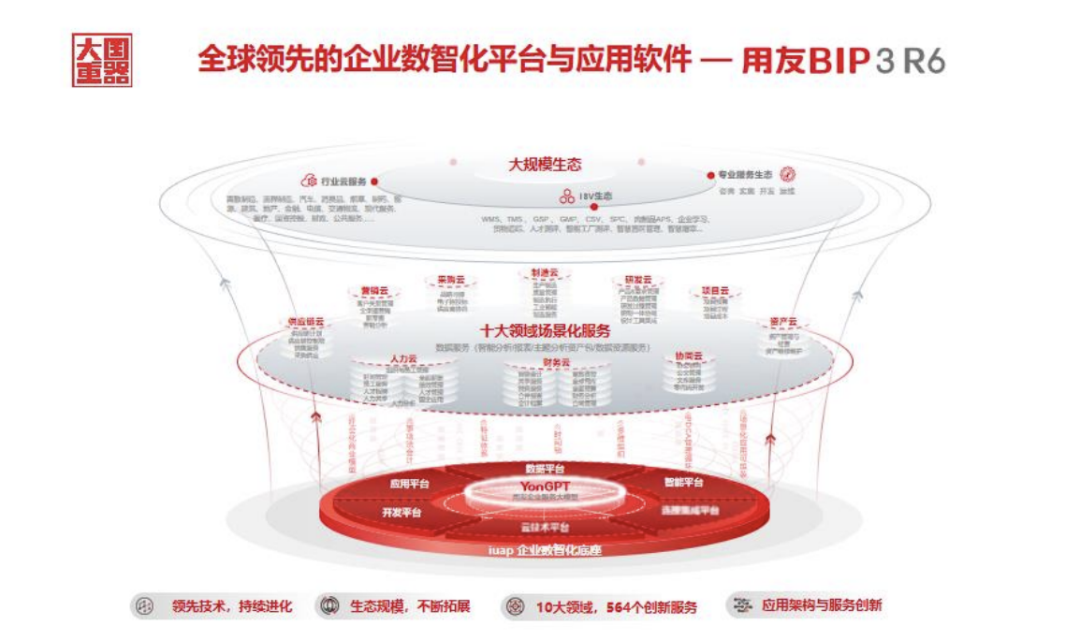 正因如此,用友推出了“大模型+数智飞轮”策略,也就是说用友网络已经开始押宝新的技术——大模型。2023年7月27日,用友正式发布基于数字和智能技术、服务企业和公共组织数智化的最新研发成果——YonGPT1.0。2024年8月10日,用友更新了YonGPT2.0,沉淀了财务、人力、供应链等垂直领域模型,并实现更强专业能力和完善的大模型训练体系。
