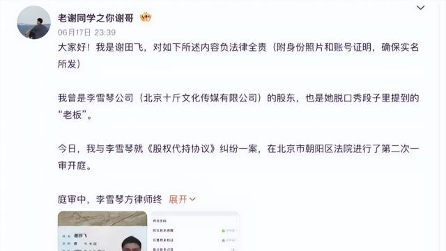 山西晚报:李雪琴方回应被实名举报:法院见!金融界:“共患难易,同富贵难”!北大才女李雪琴被合伙人实名举报!系其走红关键背后推手,涉及1100万元公司资产处理,奔驰车等被李雪琴4折卖给父母
