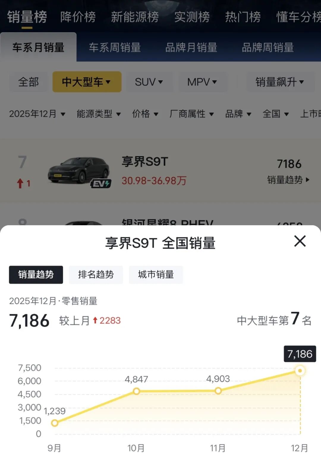 图/2025年9-12月享界S9T销售情况