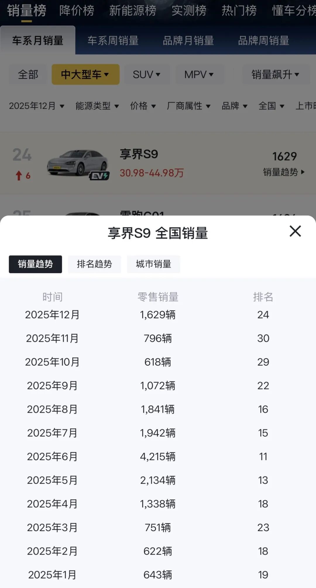 图/2025年享界S9销售情况
