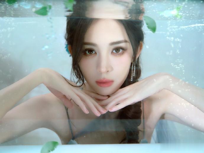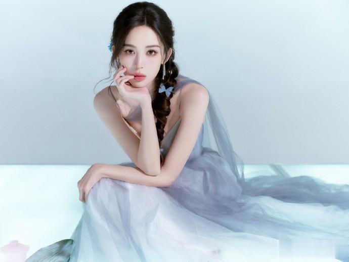 古力娜扎|雾蓝纱裙,蓝色纱裙仙气十足,完全美神降临啊