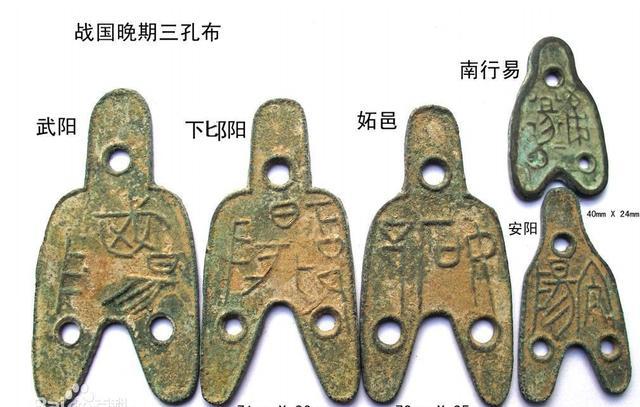 2、三孔布:圆足布之壹种。因其首部和两足部各有壹小孔而得名。这种布币发现极少,所见面文有二十余种,背文纪值,分“两”和“十二朱”等。