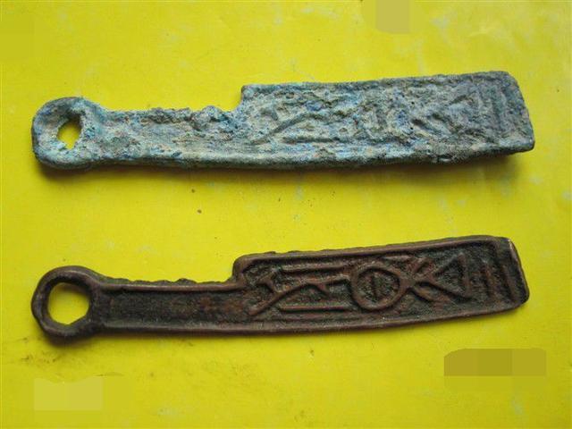 5、齐六字刀:齐刀,战国时期齐国铸行的“齐返邦長大化”、“齐大化”、“齐之大化”、“即墨之大化”、“即墨大化”、“安阳之大化”等刀币的总称。除此之外,一般將“莒邦”等殘刀亦归入齊刀範圍。