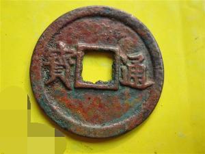 14、咸通玄宝:唐錢。鹹通十壹年(870)桂陽監錢官王彤所鑄,尋即廢止,存世極罕。