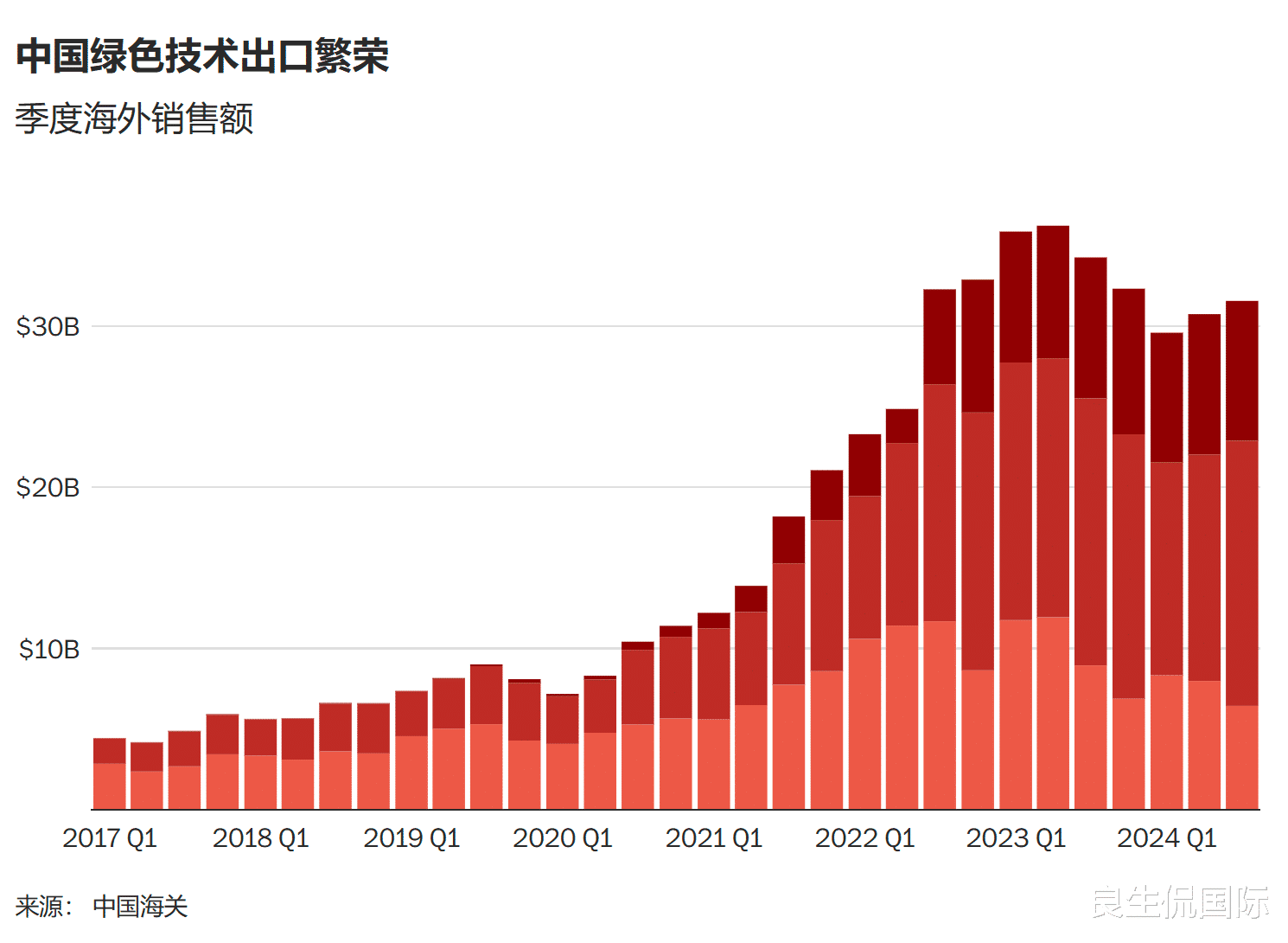 美国卡内基国际和平研究院的学者,麦克布赖德表示:“中国在清洁能源技术领域的领先优势无论怎样强调都不为过,差距巨大,而且是史无前例的。”