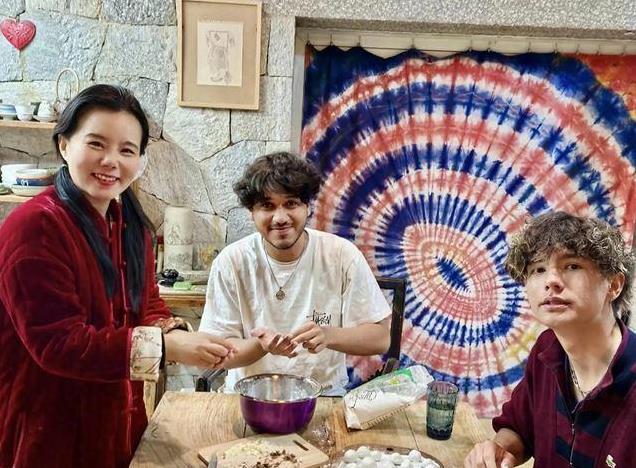 在一袭红色的新中式服装下,五十岁的她显得分外年轻。扎着两条马尾辫的她,笑容洋溢,宛如一个充满活力的大姐姐,而非一位母亲。来自苏丹的小伙与雅酷坐在餐桌旁,一起包制着丰富多彩的汤圆。