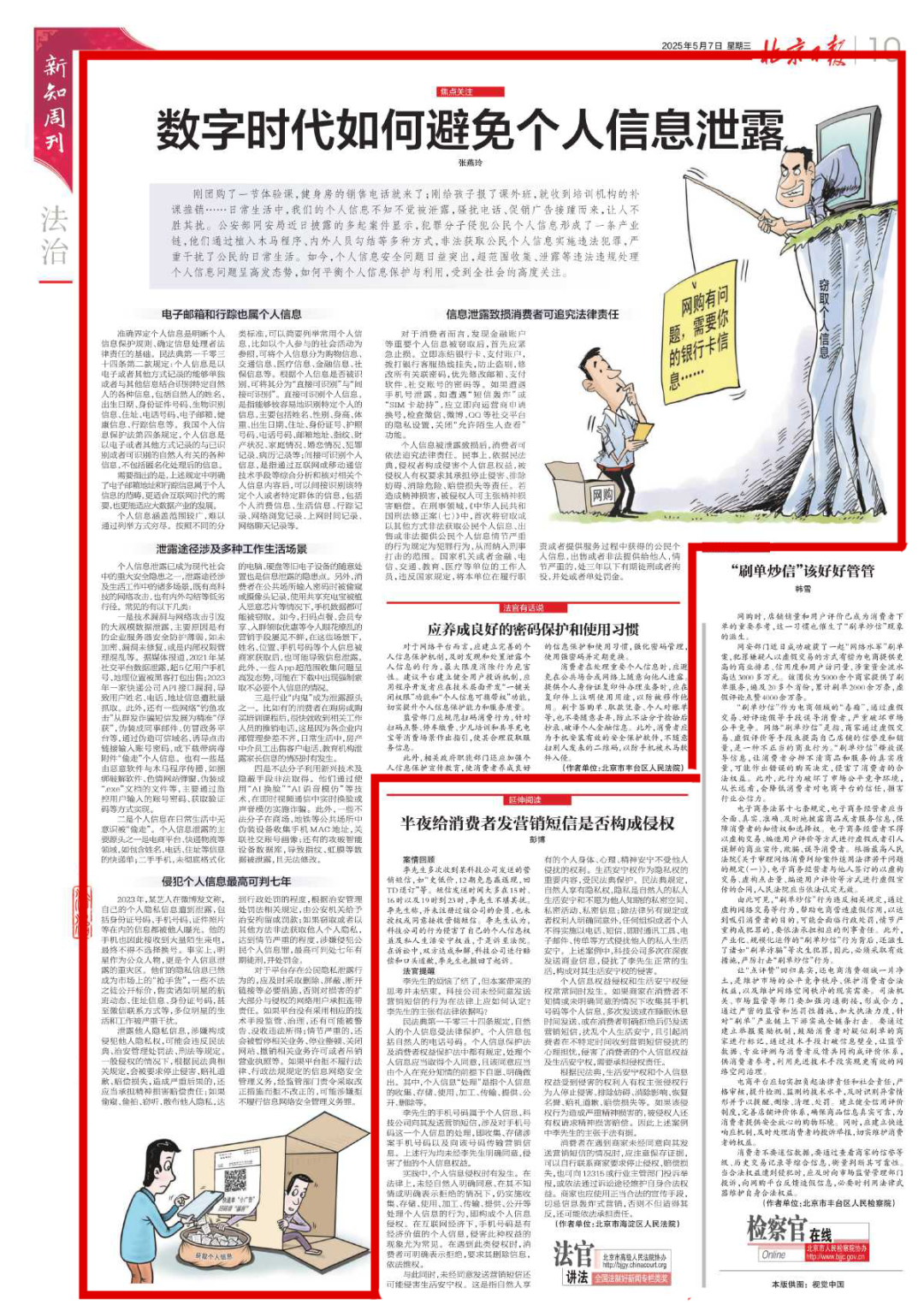 刚团购了一节体验课,健身房的销售电话就来了;刚给孩子报了课外班,就收到培训机构的补课推销……日常生活中,我们的个人信息不知不觉被泄露,骚扰电话、促销广告接踵而来,让人不胜其扰。公安部网安局近日披露的多起案件显示,犯罪分子侵犯公民个人信息形成了一条产业链,他们通过植入木马程序、内外人员勾结等多种方式,非法获取公民个人信息实施违法犯罪,严重干扰了公民的日常生活。如今,个人信息安全问题日益突出,超范围收集、泄露等违法违规处理个人信息问题呈高发态势,如何平衡个人信息保护与利用,受到全社会的高度关注。