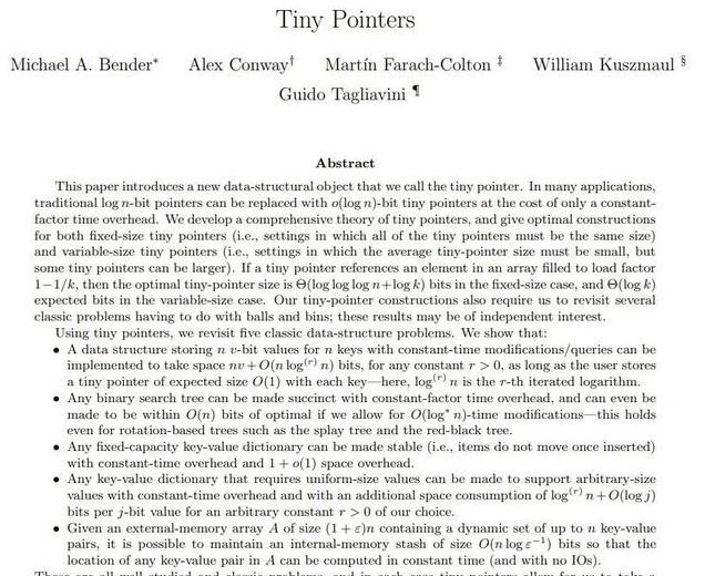 故事始于 2021 年秋季,当时 Andrew Krapivin 偶然邂逅了一篇名为《Tiny Pointers》(微型指针)的论文。彼时,他或许并未意识到这篇论文将成为他学术生涯的转折点。直到两年后,当他有空深入研读这篇论文时,一个大胆的想法在他脑海中逐渐成型。论文中的微型指针概念激发了 Krapivin 的灵感,他发现了一种有望进一步降低指针内存使用量的方法。但在此之前,他需要找到一种更优的方式来组织指针指向的数据,而哈希表成为了他探索的方向。