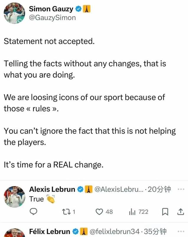 法国的勒布朗兄弟、西蒙等知名球员接连发声,直言WTT的赛制需要改革,更有人指责WTT正在摧毁一位受人尊敬的球员。