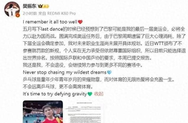 就连人民政协网也罕见地发声,发布了一段樊振东过去两年的精彩比赛集锦,似乎在无声地支持他的决定。