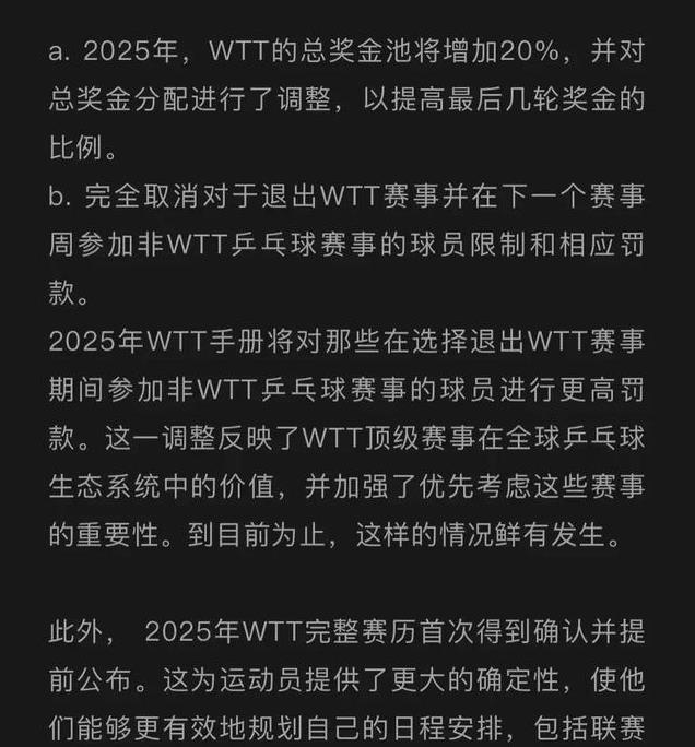 这些事件让人们开始质疑WTT的规则是否真正考虑到了球员的实际需求和人性化关怀。