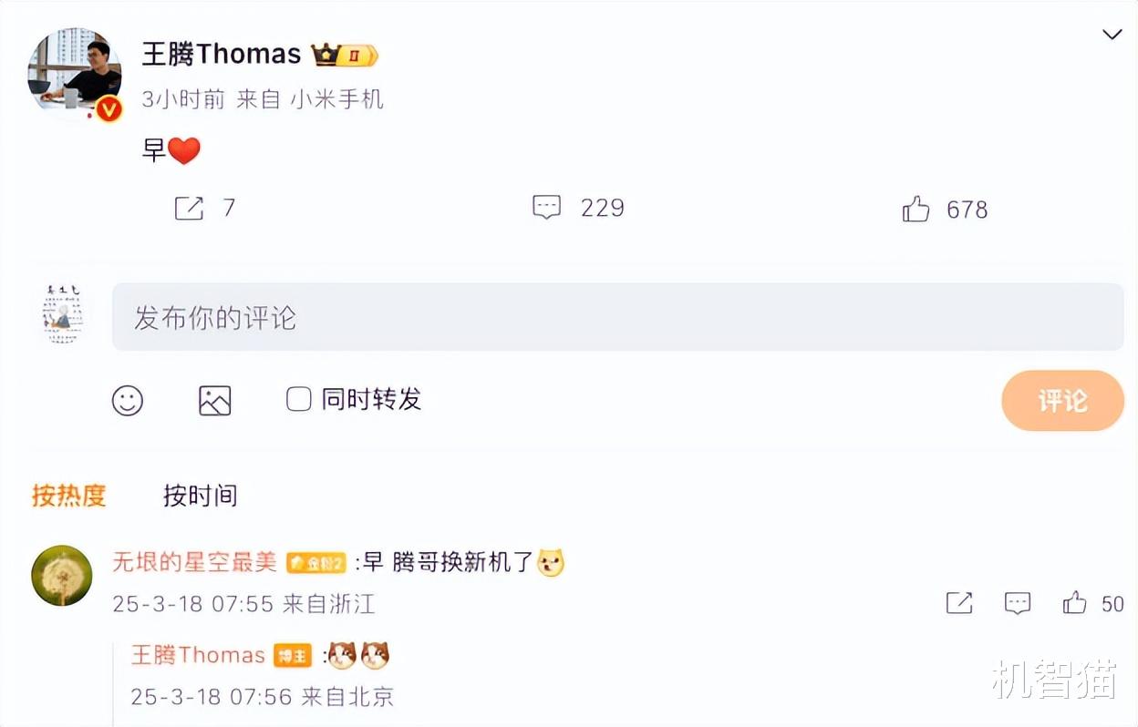 今日消息,小米市场部总经理、REDMI品牌总经理王腾发布了一条仅一个“早”字的微博,虽然正文没什么特别之处,但细心的网友却发现了其中的玄机。