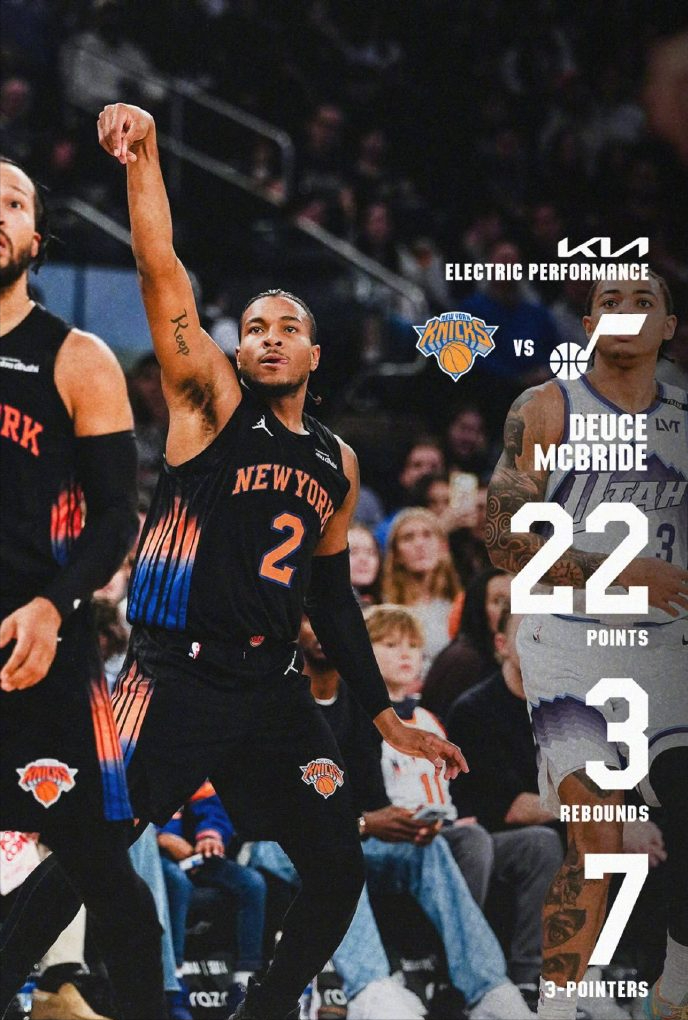 麦克布莱德重回替补,依旧手感火热,出战22分钟,投篮11中7,三分球10中7,罚球1中1,拿下22分3篮板2助攻1盖帽的数据,正负值+35。克拉克森十分给力,替补出场31分钟,13投5中,三分球5中2,罚球6中4,得到得到16分4篮板5助攻2抢断。阿努诺比缺阵20多天后迎来复出,中规中矩,出战23分钟,8投4中,三分2中0,罚球4中3,得到11分。