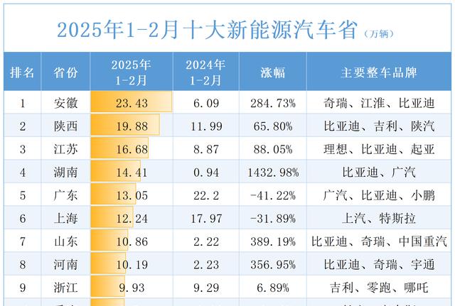 在这些数据背后,安徽省无疑成为了新能源汽车行业的佼佼者。一季度,安徽以76.17万辆的产量稳坐全国第一,拉开了与其他省份的差距。而山东则在此趋势中迅速崛起,以57.63万辆的成绩首次跻身第三,这一突如其来的变化让人倍感惊喜。相比之下,江苏的第排名则出现下滑,这反映出市场竞争的残酷与不确定。