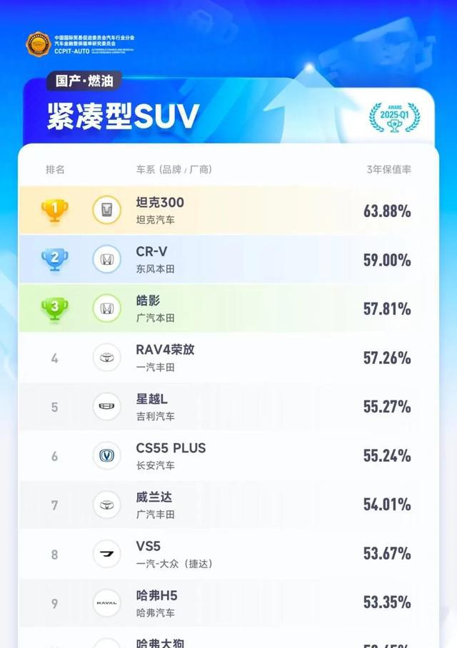 近期发布的《2025Q1中国汽车保值率排行榜》显示,坦克300以63.88%的三年保值率蝉联“国产燃油紧凑型SUV”及“中国品牌燃油紧凑型SUV”两项榜单的冠军,足以显示其在市场中的独特地位。这个数据可谓非常引人注意,因为在汽车行业,保值率高意味着市场认可度强,消费者对于这款车的信心也相对较高。那么,坦克300的保值能力和市场表现究竟源于哪里呢?