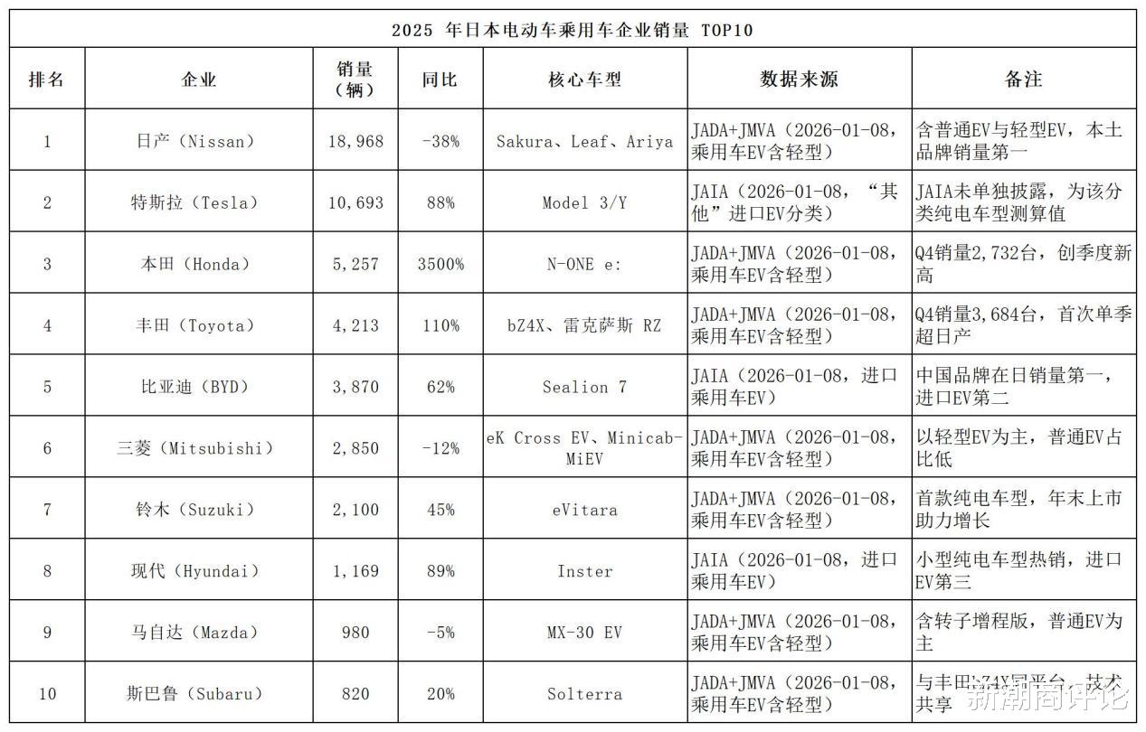 根据日本汽车经销商协会(JADA)和日本轻型汽车协会联合会(JMVA)的数据,2025年日本电动汽车(EV)销量同比增长1.6%至60,677辆(含进口乘用车,不含纯电巴士、卡车等商用车),为近两年来首度增长。