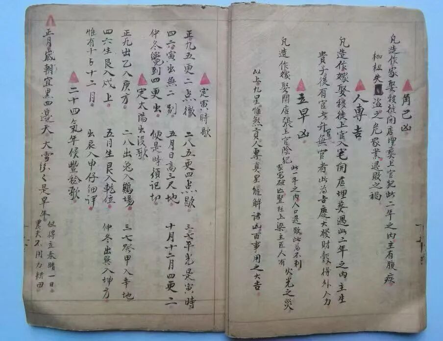 同时,全书紧扣生活场景,精准标注出行忌日、出行十二时吉凶方向,助你平安往返;详解入宅移居、纳财收债、盖屋修造等大事吉日;甚至囊括剃头、祈祀灶神、修厨房、造酒等细事的专属吉日,无微不至。更附有《定寅时歌》《二十四气年候礼念歌》校准时辰节气,搭配《嫁娶周堂图》,确保婚嫁等大事万无一失。