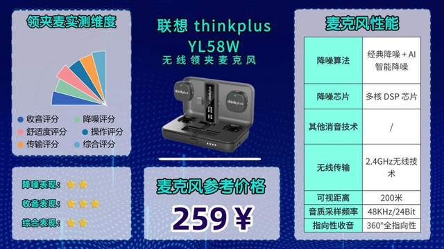 机型概述:基础实用的“闭眼入款”,2.4G传输抗干扰性超强,就算靠近路由器、蓝牙设备也不会出现烦人的电流声。外观简约,做工精致,完全没有廉价塑料的质感,长时供电不用频繁找插座,日常拍短视频、录口播完全够用。