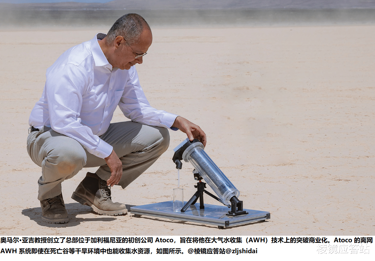 这不再是实验室里的瓶瓶罐罐。亚基创立的公司Atoco,已经把这种分子魔法变成了现实的方舟。在加州的死谷,就是那个被叫做地球上最像火星的地方,测试设备在大太阳底下静静立着,没有风扇嗡嗡响,也没有压缩机震动,到了傍晚,杯子里就装满了清亮的液态水。