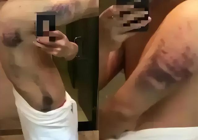 看守会定时殴打囚犯,逼他们屈服,王威头上、身上多处淤青,双臂也因为长时间反铐而血肉模糊。