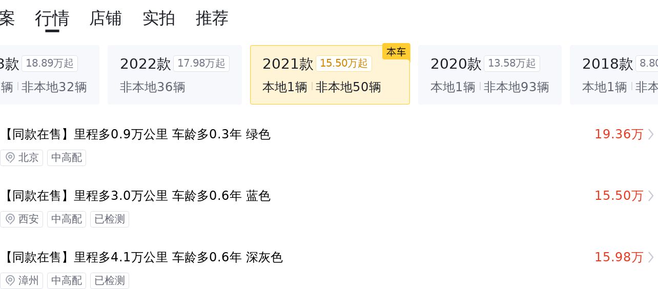 目前该车的二手车市场行情在19.18万至23.78万之间,此车售价为19.98万,落入正常区间内,但并无太多价格优势。但考虑到这辆车是2022年1月上牌,至今仅仅使用了2年左右,且行驶里程仅为2.7万公里,如此短暂的使用时间和较少的里程数,这辆车还是具有一定的购买价值的。