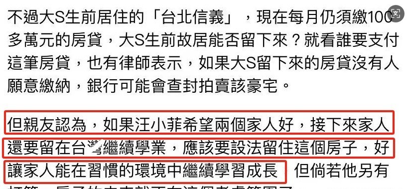大S的亲友团,通过媒体隔空喊话,内容是什么呢?说是“如果汪小菲希望孩子继续在台湾生活学习…”。这背后隐藏着什么?明眼人一看便知,这是在用孩子当筹码,暗示汪小菲承担房贷,以此换取孩子在台湾的居住权。